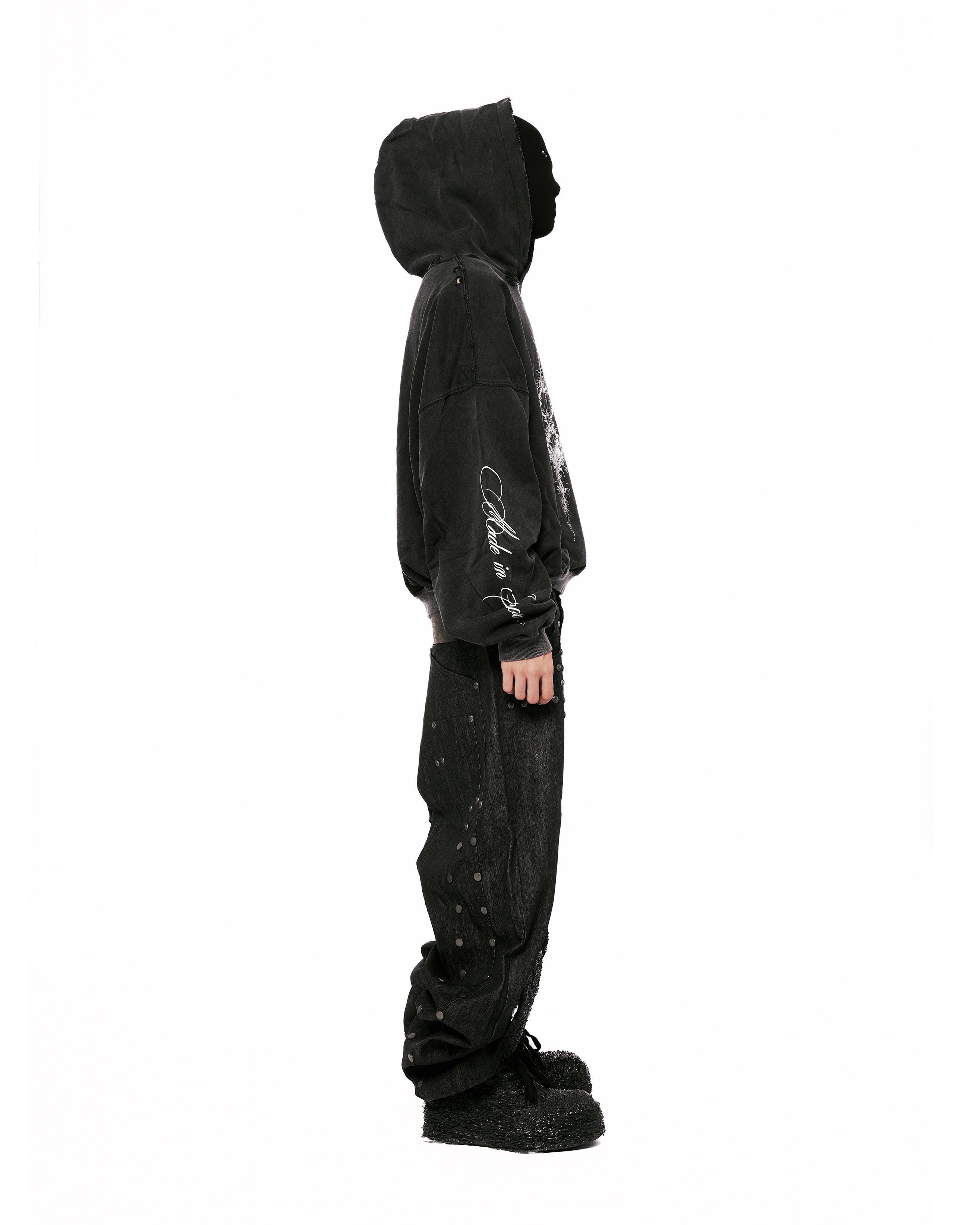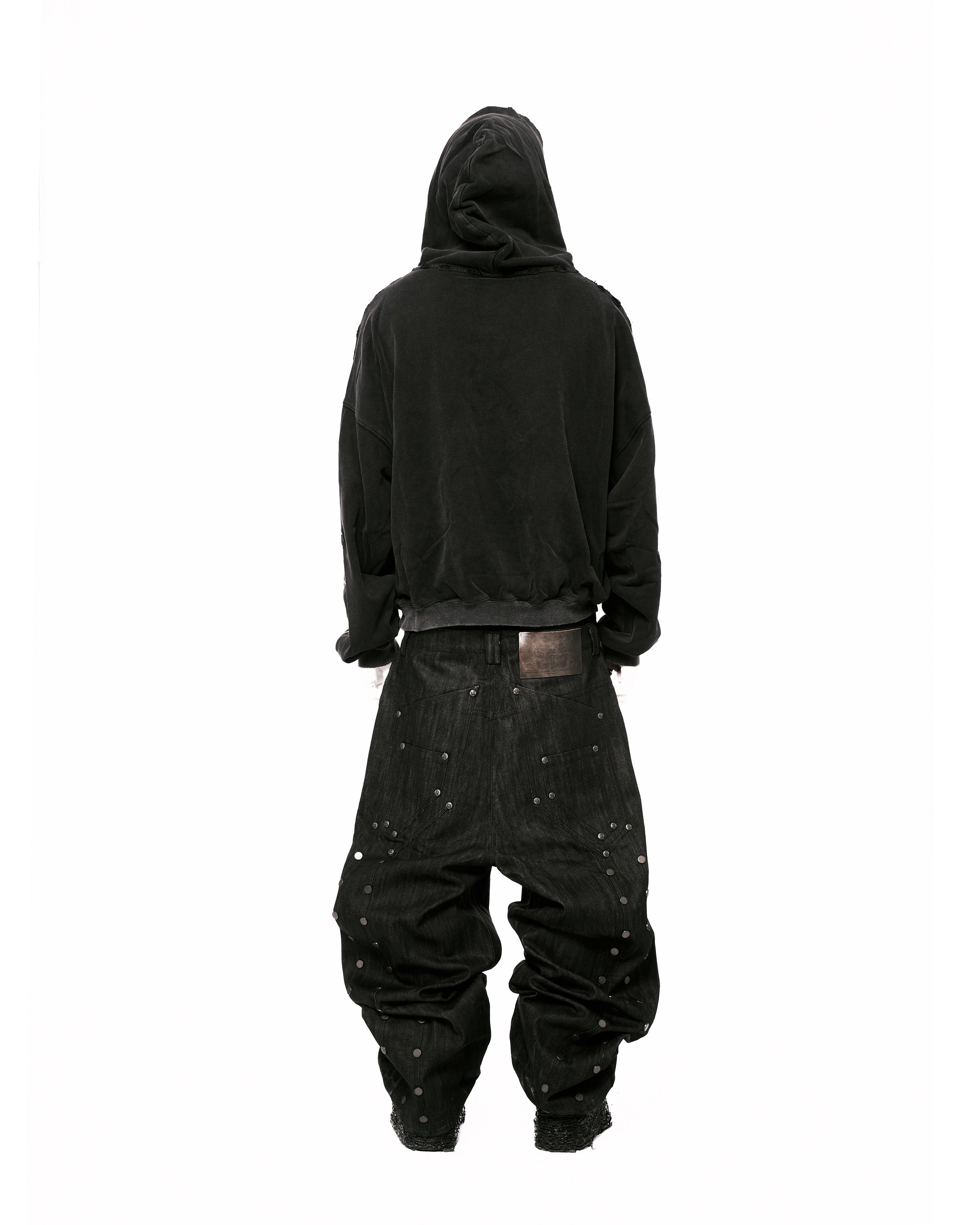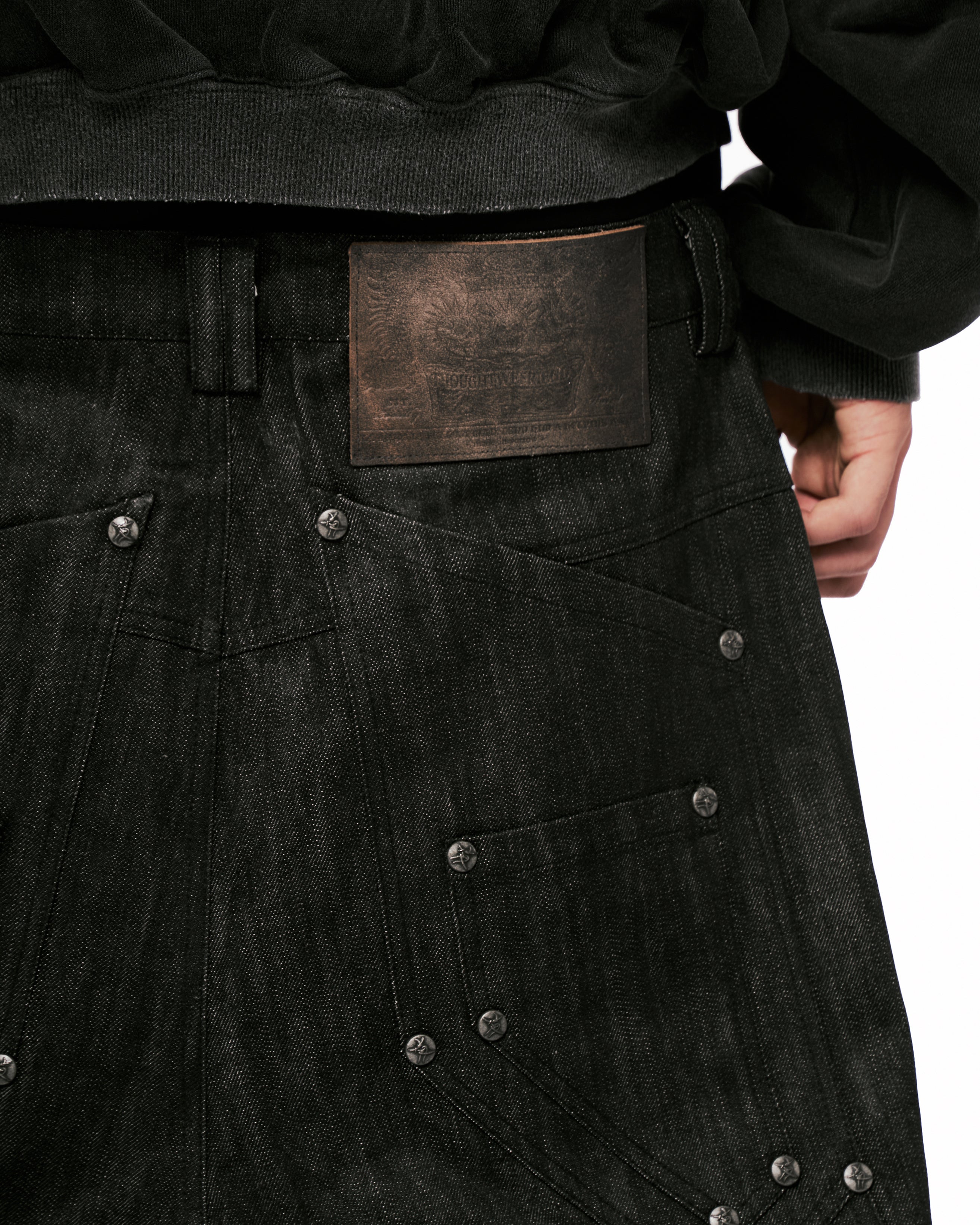 "Devlin" Studded Waxed Japanese Raw Denims in Black