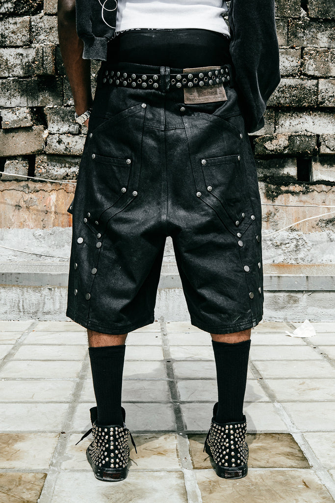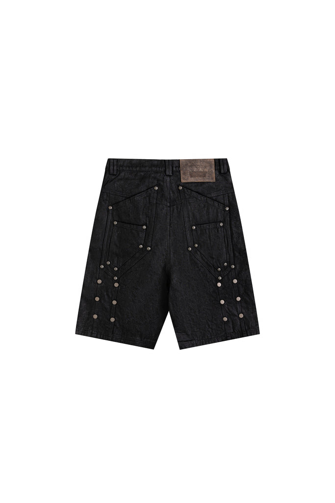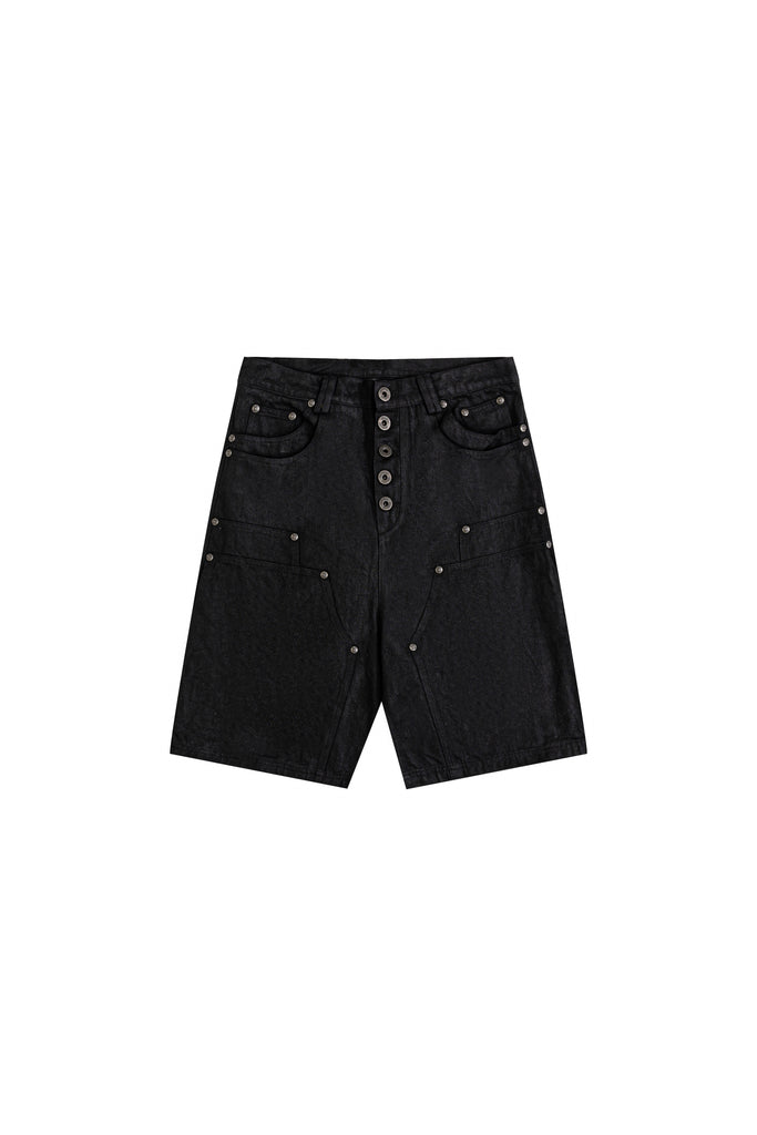 "Rexel" Waxed Double Knee Work Jorts in Black Denim