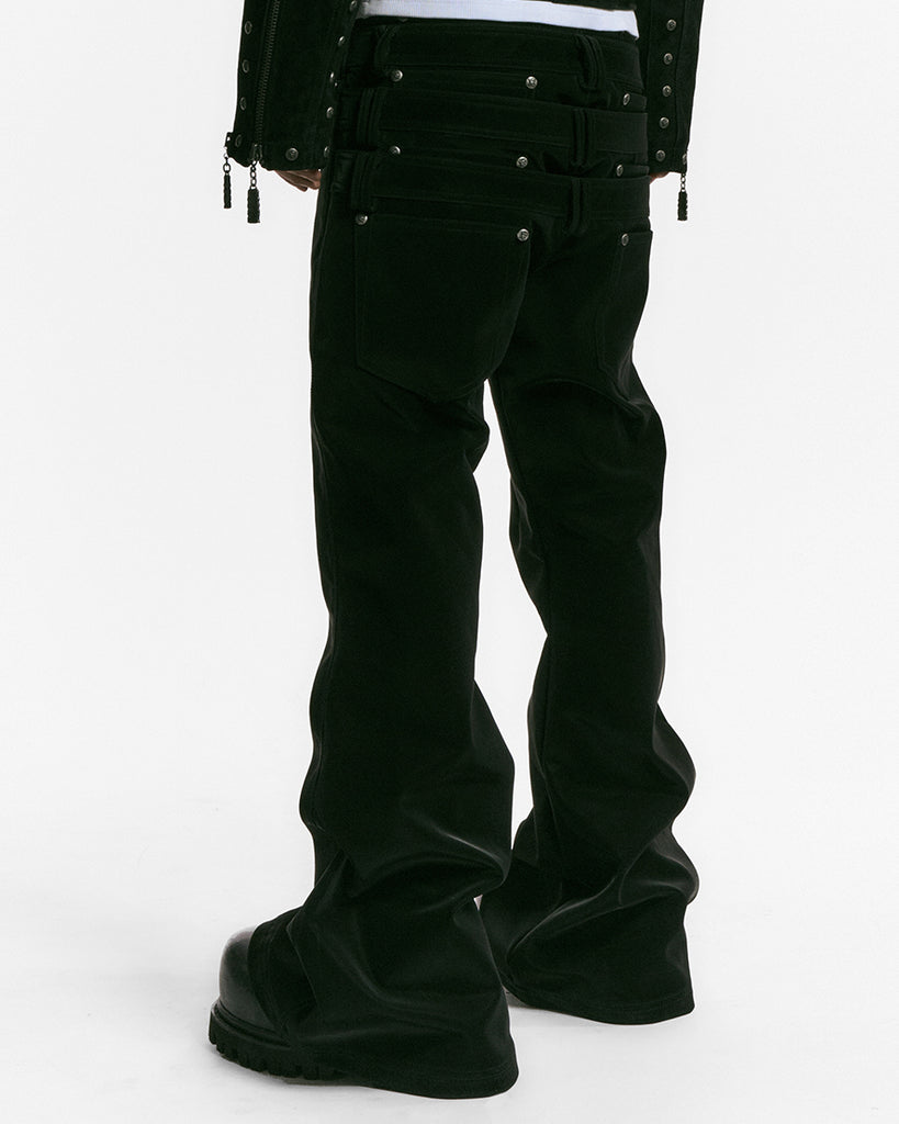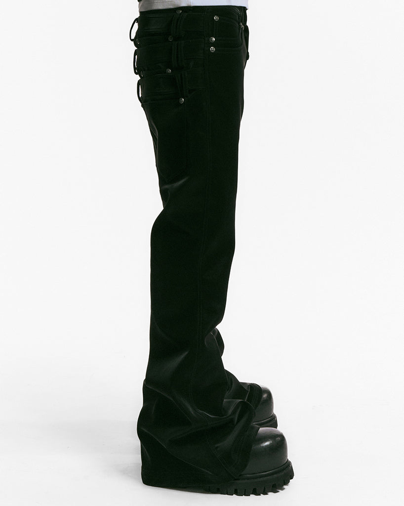 "Raymond" Coated PU Leather Multi-Layered Flared Pants