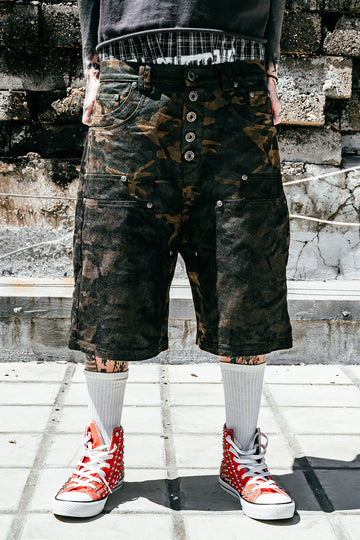 "Rexel" Waxed Double Knee Work Jorts in Green Camo